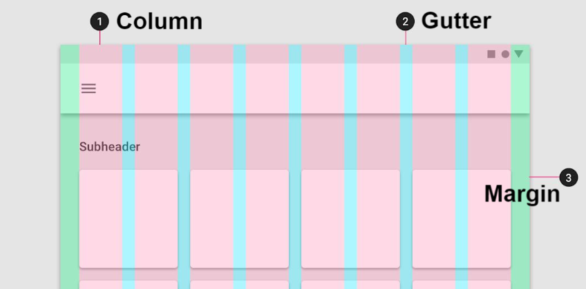 - gutter | column과 column 사이의 간격으로, 컨텐츠와 컨텐츠를 시각적으로 분리하는 데 이용