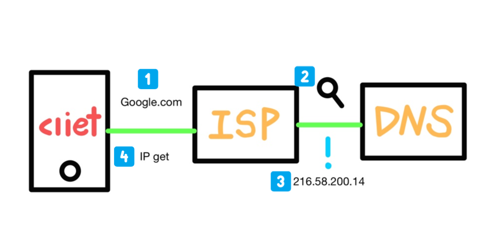 - 브라우저는 우리가 입력한 정보 "google.com"을 ISP에게 전달하고, ISP는 "google.com"을 DNS 서버에 전달한다.