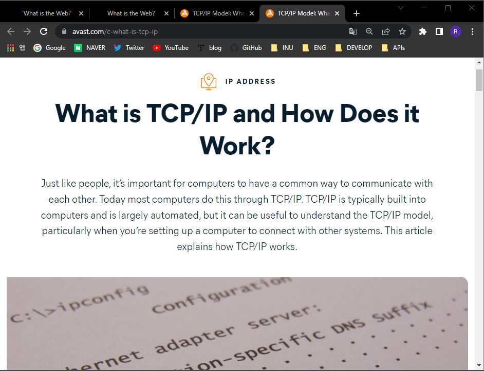 - IP 주소가 반환되면, 요청 받은 데이터를 전달해야 한다. 데이터의 전송과 관련된 프로토콜(규칙)을 정의한 것이 TCP이다.