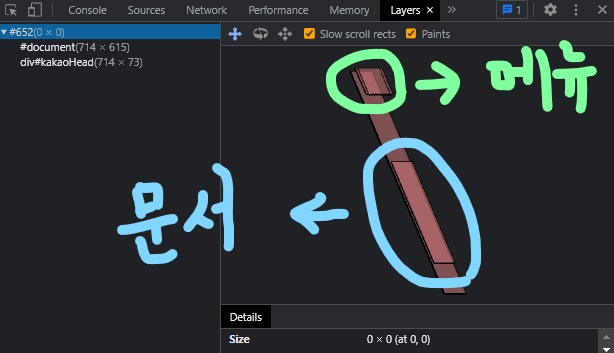 layout 단계에서 수학적으로 크기, 위치가 결정된 요소들은 하나 하나씩 개별적으로 우리의 페이지에 보여지는 것이 아니라, 몇몇 요소들끼리 "layer"를 구성하고, layer 단위로 보여진다. 크롬 개발자 툴에서도 이것을 확인해 볼 수 있다.