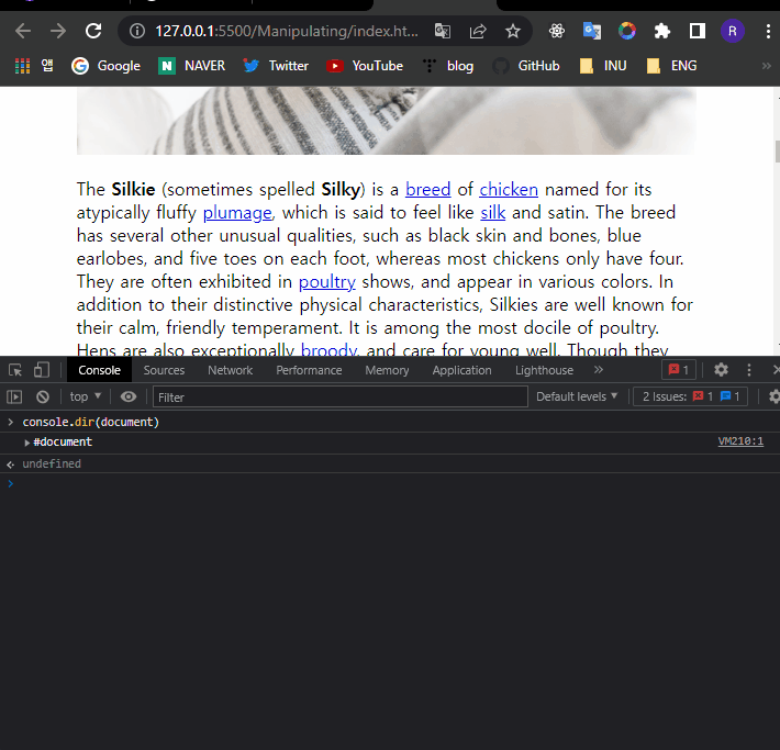 - console.dir(document) | 실제로 변환된 object 형식으로 보여준다.