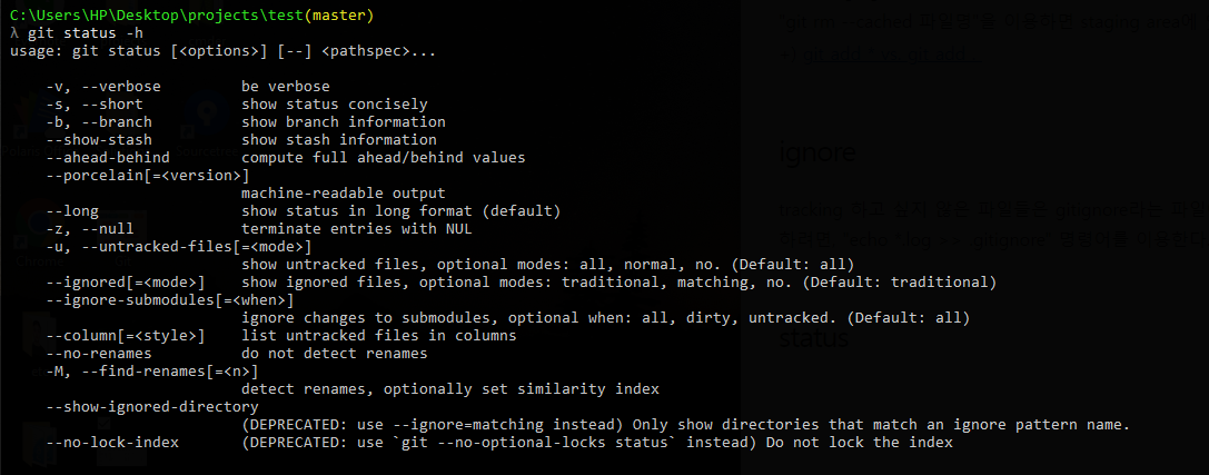 - trancked/ untracked files... | 깃이 변경 사항을 추적하고 있는 파일(tracked files), 아닌 파일(untracked files)