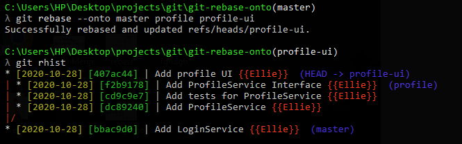 branch위에 또다른 branch가 chaining 되어있을 때 rebase --onto 옵션을 유용하게 사용할 수 있다.