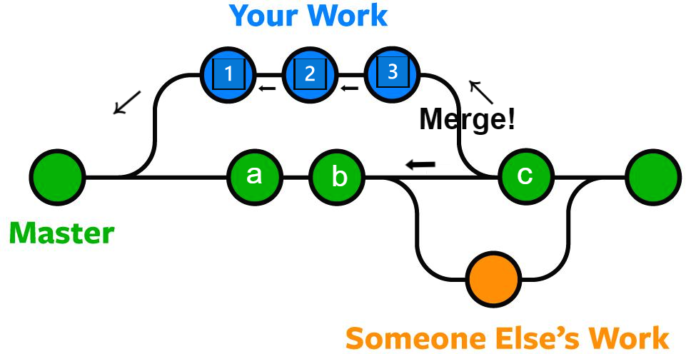 merge는 branchB에서 독립적으로 개발한 commit들을 branchA에 포함시켜서, branchA가 B에서 개발한 commit들을 history에 기록하는 것을 말한다. 즉 branchA가 B에서 발생한 모든 변경사항들을 알게 되는 것이다.